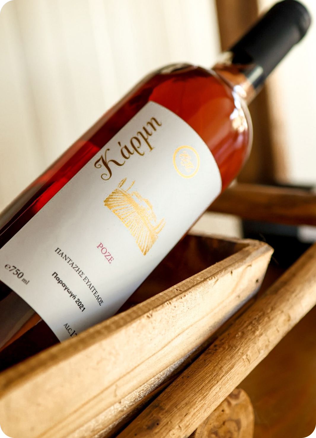 Κάρμη, θηλυκή θεότητα της Κρήτης που ελέγχει την γιορτή της συγκομιδής. Είναι ένα ξηρό κρασί ήπιας εκχύλισης από κόκκινα σταφύλια, έχει έντονα αρώματα από κόκκινα φρούτα και νότες ανθικου χαρακτήρα. Έχει μέτρια οξύτητα και δροσερές ταννινες |